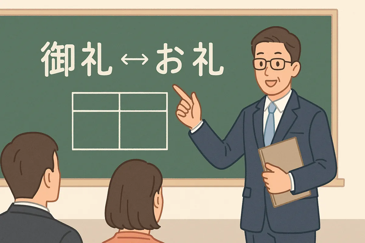 「御礼」は敬語的・儀礼的な表現で、フォーマルな文章や挨拶で使われます。