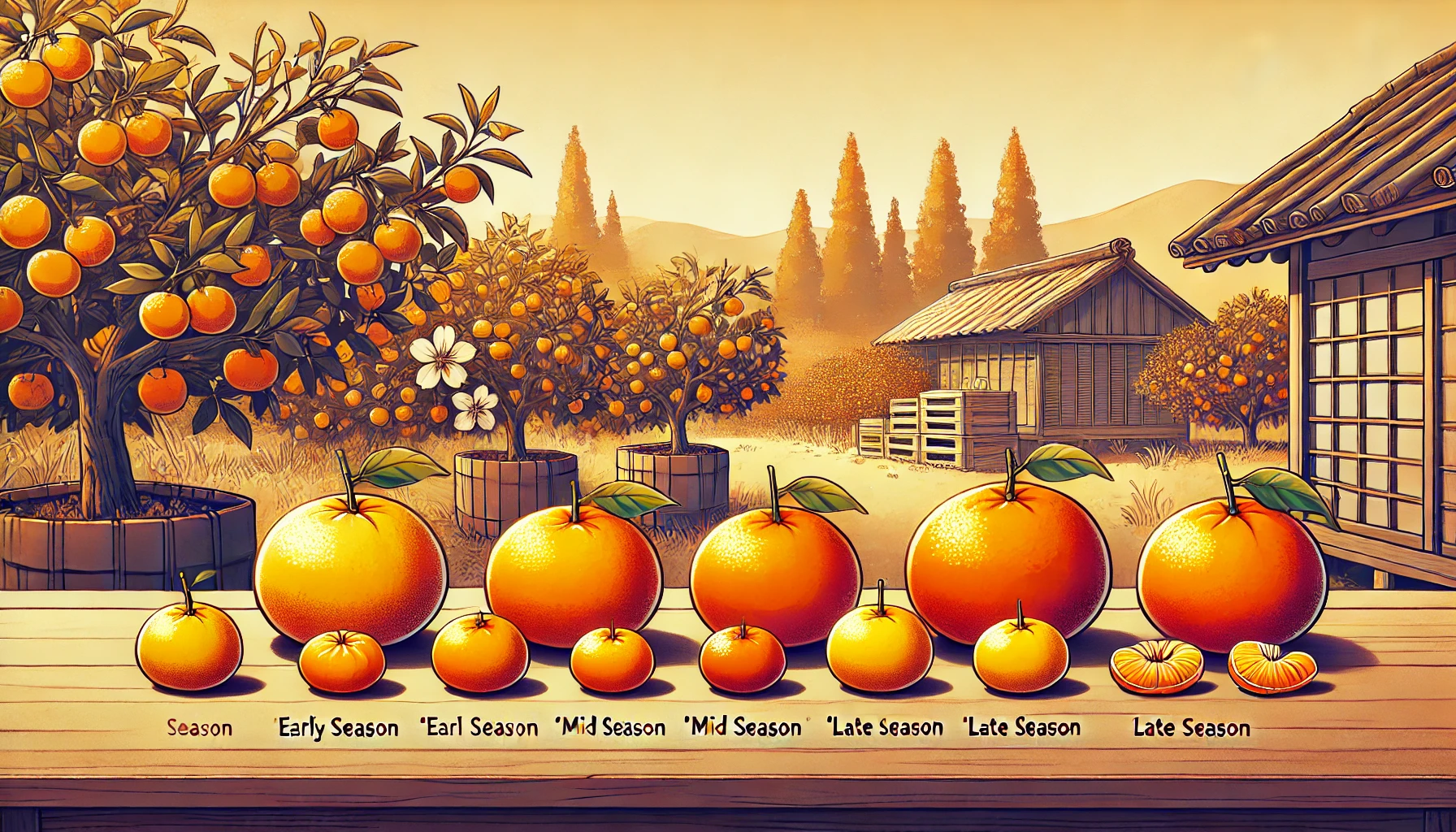 温州みかんには「極早生」「早生」「中生」「晩生」といった成熟時期の違いがあります。