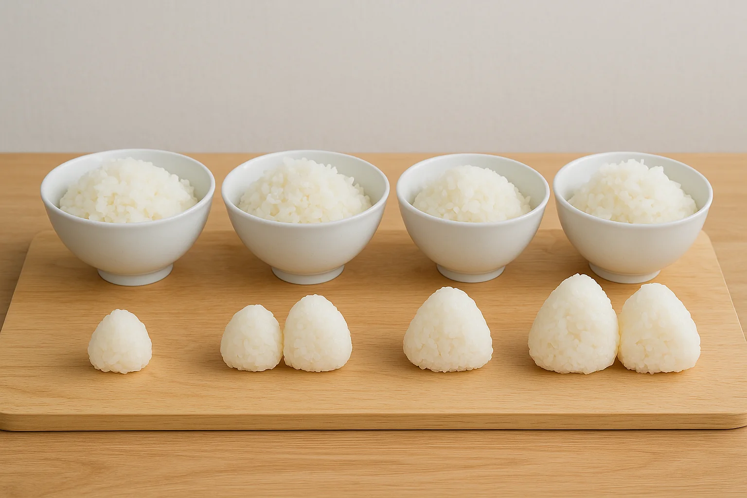 握る強さや具材の量で多少の違いが出るため、やや多めに炊くと安心です。