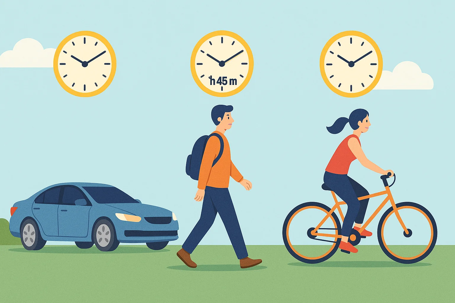 車、徒歩、自転車の移動時間を具体的に検証