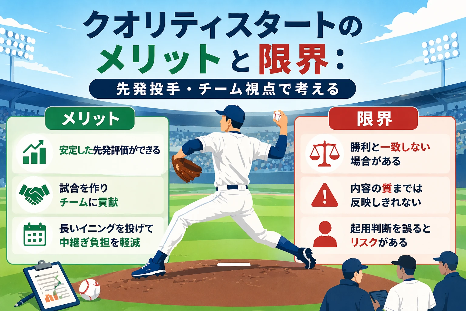 さらに補足すると、QSは打線の援護に左右されにくく、投手自身の安定性をシンプルに評価できる点が評価されている理由の一つでもあります。
